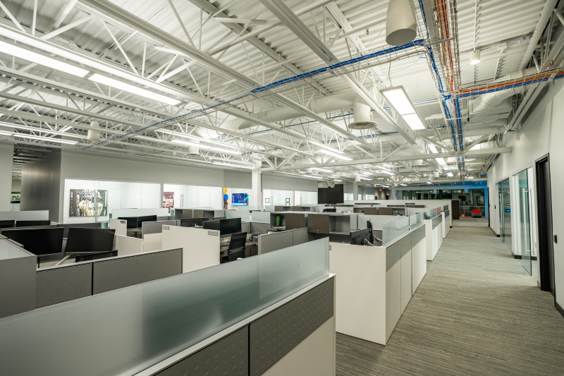 The new FUSE building, now the third on a corporate campus (aka, “the GRID”), is a 70,000-sq.ft., 3-story facility that incorporates a variety of space types and functions such as open plan and enclosed offices, conference rooms, a lighting and control showroom, film/video studio, logistics, and food service spaces accommodating the company’s recent increased employee population.
