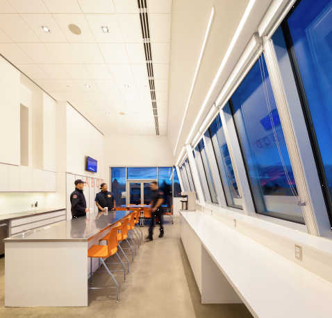 The lighting control infrastructure is thoughtfully designed to meet firefighters’ challenging emergency response operational needs while prioritizing energy efficiency, lighting control flexibility and adaptability, and firefighters’ circadian comfort. The lighting control infrastructure features: